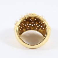 Bague en or 750 mil à croisillons ornés de pierres imitations intercalés de perles de culture (Manques perles de culture) (TDD : 52). 10,9 g brut.