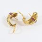 En parure avec le numéro précédent : Paire de boucles d'oreilles en or 750 mil barrées de rubis calibrés épaulés de diamants (Haut : 2 cm; Larg : 1,5 cm environ). 13,8 g brut.