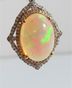 Pendentif losangique en gris 585 mil centré d'un cabochon d'opale de belle couleur, entouré et épaulé de diamants (Dim sans bélière : 2,3 cm; 1,7 cm; Dim opale : 1,4 cm x 1 cm). 2,8 g brut.