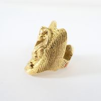 Bague en or amati 750 mil. à décor de pharaon, travail français, traces de numéro et de signature (TDD : 53 environ) (dimensions : 3,2 x 2 cm environ). 20,9 g.