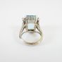 Bague en or gris 750 mil. à monture de fils d'or, ornée d'une aigue-marine rectangulaire à pans coupés entre 2 lignes de diamants taille brillant, travail français (TDD : 54,5) (dimensions pierre : 17,3 x 12,1 x 8,1 mm environ) (tout petits éclats, très légères égrisures). 11,8 g. brut