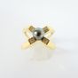 MATY. Large bague croisée en or 750 mil. centrée d'une perle de culture grise entre 4 petits pavages de diamants taille brillant (TDD : 66) (largeur : 18,2 mm environ) (diamètre perle : 8,1 mm environ). 12,1 g. brut