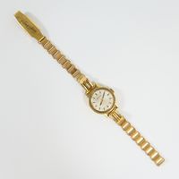 RICHARD. Montre-bracelet de dame en or 750 mil., petit boîtier rond, mouvement mécanique, bracelet et boucle en métal doré (diamètre : 20 mm environ) (longueur : 15,5 cm environ) (rayures, usures, boucle chiffrée). 15,8 g. brut