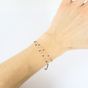 UNOAERRE. Collier en métal (- de 375 mil.) à fine maille forçat alternée de petites boules partiellement émaillées bleu, signé (longueur : 40 cm environ) (petits manques à l'émail). 1,3 g. brut