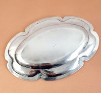 ALPHONSE DEBAIN (actif 1883-1911) : Plat ovale en argent 950 mil. à bord festonné, à filets et agrafes rocailles feuillagées. Poinçon Minerve et poinçon de maître AB bécasse. Dimensions : 41,5 x 28,5 cm. Poids : 868,7 g.