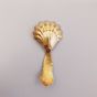 CHARLES BUZOT (actif 1835-1859), SECOND EMPIRE : 3 Pièces de service pour le thé en vermeil modèle violoné à filets et agrafes feuillagées comprenant : - Mini cuiller à sucre, cuilleron coquille (950 mil.), longueur : 9,5 cm, - Pince à sucre (800 mil.). Déformations. - Passe-thé repercé à section carrée (950 mil.) sans poinçon de maître. Minerves, poinçon de maître CB couronne impériale. Poids : 76,3 g.