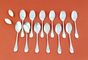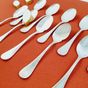 CHRISTOFLE, ORIGINE, XXe siècle : Suite de 12 cuillers à glace en métal argenté uniplat. Signées et poinçon de fabricant. Légères rayures d'usage. On y joint un plateau à couvert en feutre.