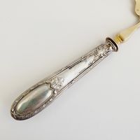 GASTON BARDIES (Actif 1897-1914) : Pelle à tarte en argent fourré 950 mil. et métal doré, décor style guirlande. Poinçon Minerve. Usures.