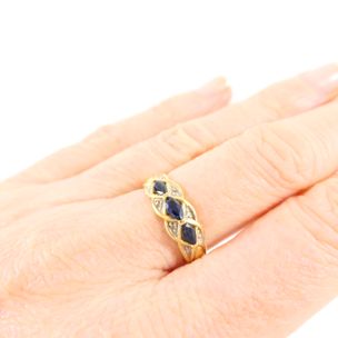 Bague 2 ors 750 mil. texturés à maillon gourmette pavé de diamants brillantés (TDD : 52,5). Travail français des années 70. 7,8 g. brut.
