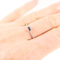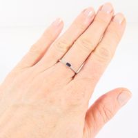 DJULA. Bague en or gris 750 mil. sertie d'une ligne de petits diamants brillantés rehaussée d'un petit saphir rectangulaire (TDD : 55,5). Porte le poinçon de maître. (E : Art. 524 bis du CGI al. C). 1,5 g. brut.