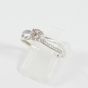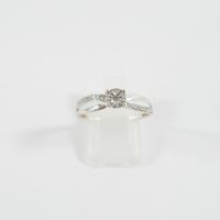 Bague en or 375 mil ajouré, centrée d'un chaton rond diamanté (Diam : 0,5 cm) épaulé d'une ligne de diamants (TDD : 58). 1,4 g brut.