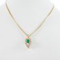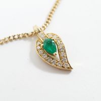 Collier en or 750 mil maillons gourmette (Long : 58; Larg : 2 mm) centré d'un pendentif figurant un feuille centrée d'une émeraude entourée de diamants (Dim sans bélière : 0,8 x 1,4 cm environ). 8,8 g brut.