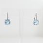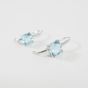 Paire de boucles d'oreilles en or gris 750 mil ornées d'une topaze facettée surmonteée d'une ligne de diamants (Dim : 2 x 0,9 cm environ). 3,9 g brut.