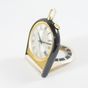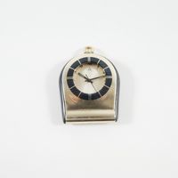 Réveil de voyage e acier, acier noirci et émail, JAEGER LECOULTRE en forme de cloche (Dim : 4,3 x 3,7 cm environ), cadran argenté à chiffres romains et guichet datur, mouvement mécanique (légers chocs, rayures).