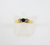 Bague en or 750 mil. centrée d'un saphir, épaulé de deux diamants 16/16. (TDD : 53) (Egrisures). 1,3 g. brut.