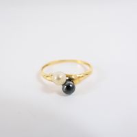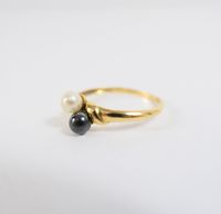 Bague en or 750 mil. sertie de deux perles de culture blanche et grise (diamètre : 4,1 mm environ) (TDD : 57). 1,4 g. brut.