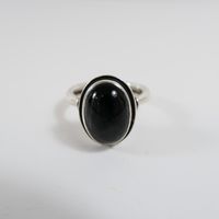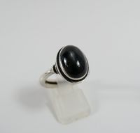 DELON Bague en argent 800 mil. centrée d'un cabochon de diopside noire. Signée. (TDD : 57,5). 7,7 g. brut.