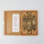 D'après Salvador DALI (1904-1989) Ensemble de 3 Mezouzot en bronze à patine dorée, chaque Mezouzah signée sur le côté. Edition DALI UNIVERSAL. Hauteurs : 15 et 11 cm. Dans un coffret en bois Salvador Dali.