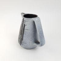 François CALECA (né en 1921) pour VALLAURIS Pichet en céramique émaillée à décor géométrique noir et rouge sur fond gris bleu moucheté. Signé sous la base. Hauteur : 17 cm.