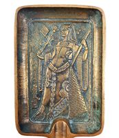Max LE VERRIER (1891-1973) La Dame de Carreaux Cendrier en bronze doré d'après une carte à jouer du XVIème siècle. Signé en dessous. 10,5 x 6,5 cm.