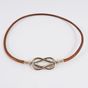 HERMES Paris. Collier tour de cou "Atamé" en cuir barénia, fermoir en métal argenté palladié estampillé formant 2 boucles qui s'entrecroisent. Longueur 41,5cm environ. Usures.