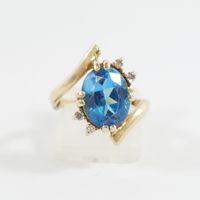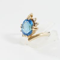 Bague en or 585 mil ornée d'une topaze égrisée rehaussée de 4 diamants (TDD : 46 environ). 4 g brut.
