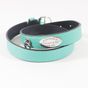 Bracelet en cuir turquoise double tour à anneau, plaque gravée et boucle ardillon en argent 925 signé TIFFANY & Co. 16 g brut.