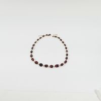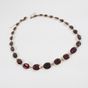 Collier en chute en or 750 mil à maillons ovale articulés ornés de grenats (chocs, nombreuses restaurations en argent) (Long : 36 cm). 18 g brut.