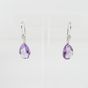 Paire de pendants d'oreilles en or gris 750 mil ornés d'un diamant retenant une améthyste taille fantaisie (polie pour la partie supérieure et facettée pour la culasse) (Dim améthyste : 1,8 x 1,2 cm environ). 4,6 g brut.