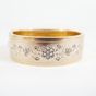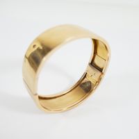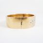 Travail français de l'époque Napoléon III. Bracelet rigide ouvrant en or 750 mil. orné d'un décor végétal ciselé et serti de diamants taille rose (poinçon tête de cheval, départements, 1838-1919) (longueur : 17,5 cm environ) (largeur : 17,8 mm environ) (petit éclat, petits chocs, manque chaînette de sécurité et ses anneaux). 29,4 g. brut