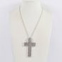 Collier articulé en or gris 750 millièmes retenant un important motif souple en or gris 750 millièmes figurant une croix entièrement sertie de diamants ronds de taille brillant. Longueur : 37,2 cm Hauteur pendentif : 6,1 cm Poids brut : 31 g