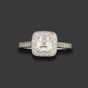 TIFFANY & CO Bague en platine 850 millièmes ornée au centre d’un diamant coussin serti clos dans un entourage et entre des lignes de diamants ronds de taille brillant. (Usures) Signée, numérotée et gravée « 1,01 carats » à l’intérieur de l’anneau. Tour de doigt : 50,5 Poids brut : 5,1 g Avec un écrin de la Maison TIFFANY & CO
