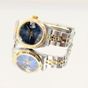 TUDOR, Princess Date. Montre de femme ronde. Référence 92413. Boîtier en acier signé et numéroté H212032. Lunette cannelée et couronne en or jaune 750 millièmes. Cadran bleu à index appliqués, guichet date à 3h. Mouvement mécanique à remontage automatique signé. Diamètre : 24 mm environ. Bracelet type Jubilee en acier et maillons centraux en or jaune 750 millièmes avec boucle déployante signée. Poids brut : 47,77 g. Sans écrin ni papiers. E)(art.524bis du CGI, al.C