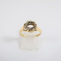 Bague en or 750 mil. à chaton rond ajouré serti de diamants taille ancienne (TDD : 54) (diamètre : 8,2 mm environ) (éclat, manque sûrement pierre centrale). 2,5 g. brut
