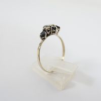 Bague en or gris 750 mil. (saphirs, diamants tailles brillant et 8/8) (TDD : 61,5) (égrisures, pierre cassée). 2,5 g. brut