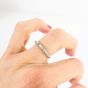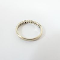 Demi-alliance américaine en or gris 750 mil. sertie de diamants tailles brillant et 16/16 de 0,03 carat environ chacun (TDD : 53) (pierre manquante, salissures). 2,3 g. brut