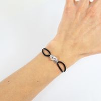 DINH VAN "Menottes R8". Bracelet composé d'un motif menottes en or gris 750 mil. serti de diamants taille brillant sur cordon en satin de soie noir, signé, accompagné de sa pochette de la Maison. 2,1 g. brut