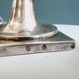 AUGSBOURG, 1787-1789 : Bougeoir en argent 800 mil. à fût cannelé et guirlandes de laurier, sur base carrée. Armoiries ducales sur la base, datées de 1788. Poinçon Lettre Date de la ville d'Augsbourg (D à la pomme de pin), poinçon de maître. Monté à l'électricité. (Soudures et déformation). 435,1 g. brut [Exempté : art. 524 bis du CGI al. c]