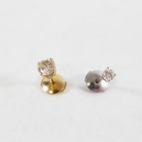 2 puces d'oreilles en or 750 mil : 1 en or gris ornée d'un diamant (environ 0,10 ct) et 1 en or jaune ornée d'un diamant (environ 0,25 ct). 1,1 g brut.
