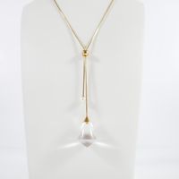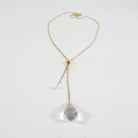 Collier à maillons serpent en or 750 mil retenant en pampille une perle de culture et un pendule en verre poli (Long avec sa rallonge : 42 cm environ). 16,3 g brut