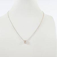 Collier maillons forçat en or gris 750 mil centré d'un motif rond orné d'un diamant (environ 0,08 ct) encadré de 4 diamants navette (Diam motif : 6 mm; Long collier : 38,5 cm environ). 2,3 g brut.