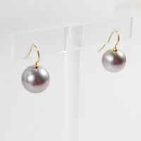 Paire de pendants d'oreilles en or 750 mil retenant une perle de culture grise (Diam : 13 mm environ). 6,7 g brut.