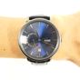 RADO "DiaMaster Power Reserve", réf. R14138206. Montre-bracelet en céramique grise et titane, boîtier rond, cadran bleu nuit rayonnant avec indicateur de réserve de marche, index bâton appliqués, guichet dateur à 6H, mouvement automatique apparent sous un fond de boîte transparent, bracelet en cuir marine, boucle déployante signée et siglée en acier, signée et numérotée (diamètre : 43 mm environ) (rayures sur le verre, bracelet usé).