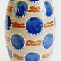 Manufacture ELCHINGER à SOUFFLENHEIM en Alsace (en activité de 1934 à 2016), années 50/60 : Vase ovoïde en faïence vernissée à décor géométrique stylisé dans les tons bruns, bleus et orangés. Signé à la pointe sous la base. Hauteur : 23 cm. (Petits éclats à la base).