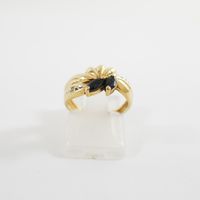 Bague en or 750 mil. sertie de 2 saphirs taille navette et de 2 diamants taille 8/8 (TDD : 45) (largeur : 9,5 mm environ) (légères égrisures). 3,4 g. brut