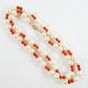 Collier d'un rang de perles de culture d'eau douce baroques alternées de boules de corail, fermoir en or 750 mil. (longueur : 60 cm environ) (diamètres : de 9 à 4,3 mm environ). 41 g. brut