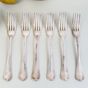 HENIN & VIVIER, fin du XXe siècle : Suite de 6 grandes fourchettes en argent 950 mil. modèle uniplat. Chiffre mavelot. Poinçon Minerve et poinçon de Maître (actif 1891-1896). Poids : 493 g. Légères usures d'usage.
