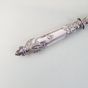 Pelle à tarte vers 1900, le manche à culot en argent fourré 950 mil. décor rocaille et tête d'angelot, la pelle en métal argenté à décor gravé d'iris. Poids : 106,7 g. brut Longueur : 30 cm. Quelques chocs.