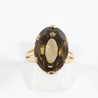 Bague en or 750 mil ornée d'un quartz fumé ovale (