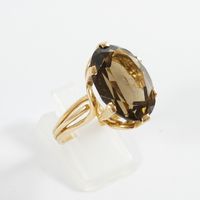 Bague en or 750 mil ornée d'un quartz fumé ovale (Dim pierre : 1,7 x 1,2 cm environ; TDD : 57). 7,6 g brut.